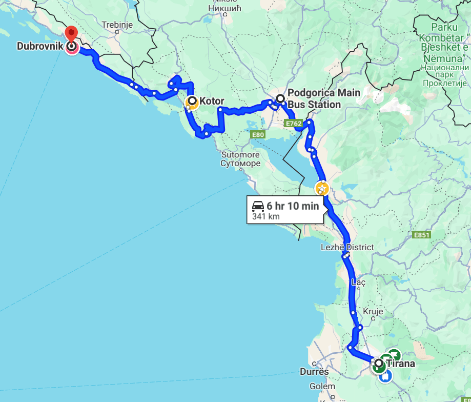 Tirana to Dubrovnik