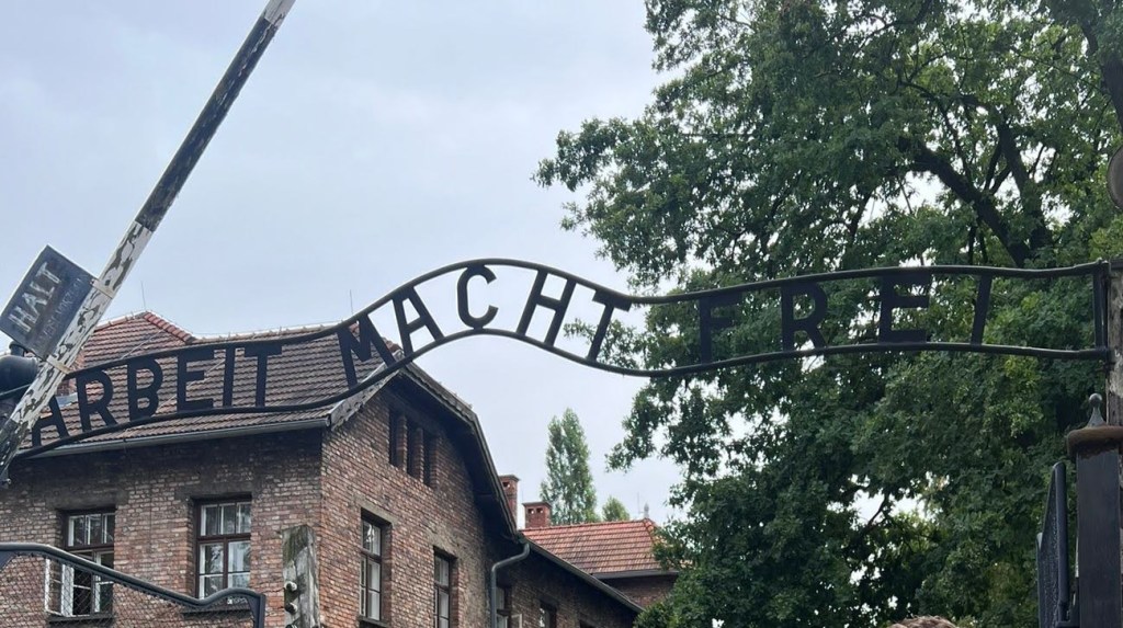 Fortunately, it’s impossible to imagine the horrors that took place here: the sheer scale of industrialised murder is beyond comprehension. I couldn’t help but reflect that we may be walking on human ashes that were used as a base for building roads and in compost for the camp farms. I was standing at the end of a road that started with ordinary folk like ourselves who bought into the idea that some people are less than us because we were looking after our own. Primo Levi said, “It happened, therefore it can happen again…it can happen anywhere.” Once we dehumanise people and allow them to be treated in a way we wouldn’t accept for our own family, the goosesteps start to the rhythm of “Stop the boats” and “Make America Great Again”.