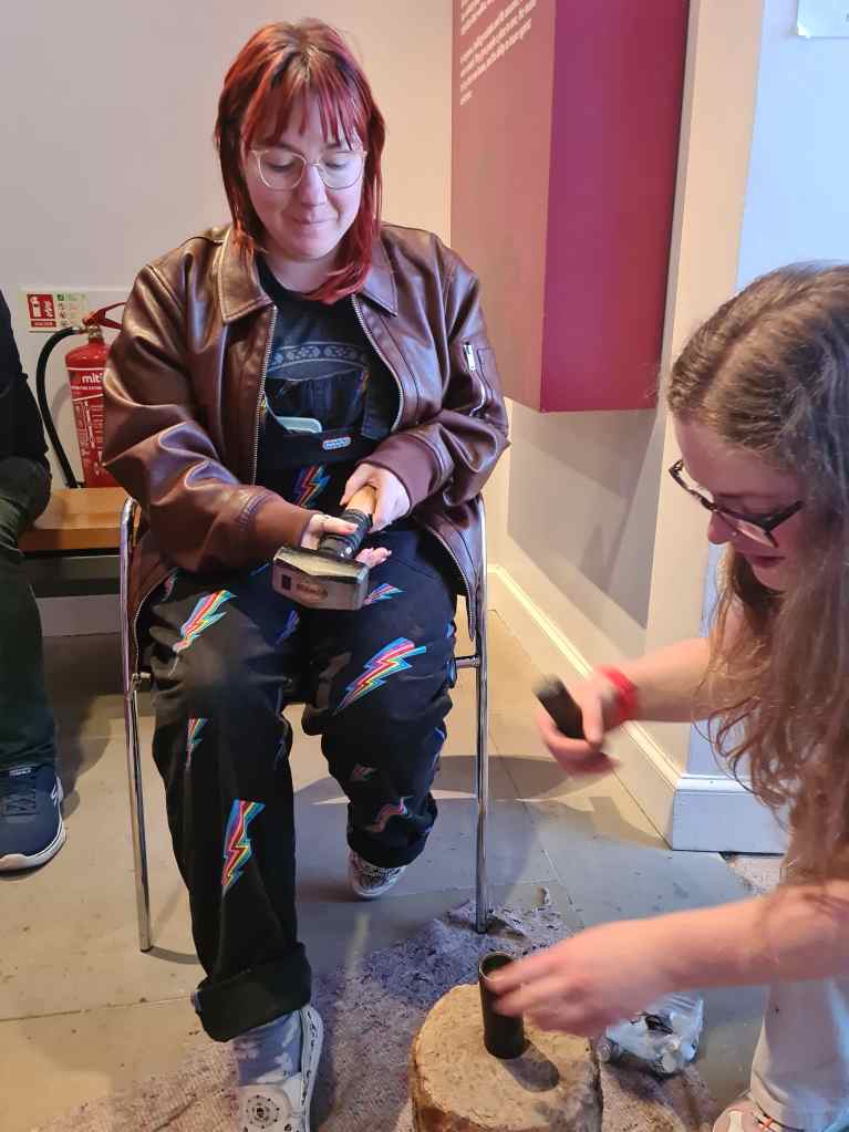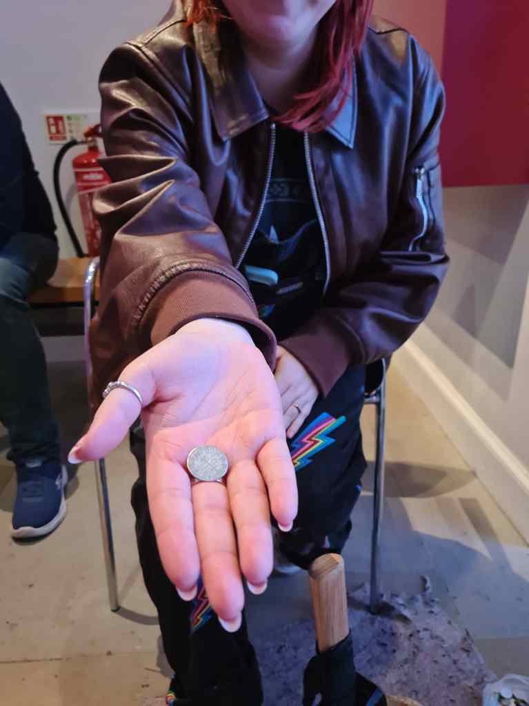 Despite living in Edinburgh for so many years, we’d never got round to visiting the Museum on the Mound situated within the Bank of Scotland. Anytime we remembered to go there, it turned out to be closed so we made the effort to plan properly this time. Meadhbh joined us and, because it was during the school holidays, they had plenty of attractions for young kids including making your own “medieval” coin. Meadhbh’s eyes lit up when she saw this and she had the hammer in her hand quicker than you could say “strike a replica of a 13th-century Scottish silver penny from the reign of Alexander III”. In some ways, none of us ever really grow up.