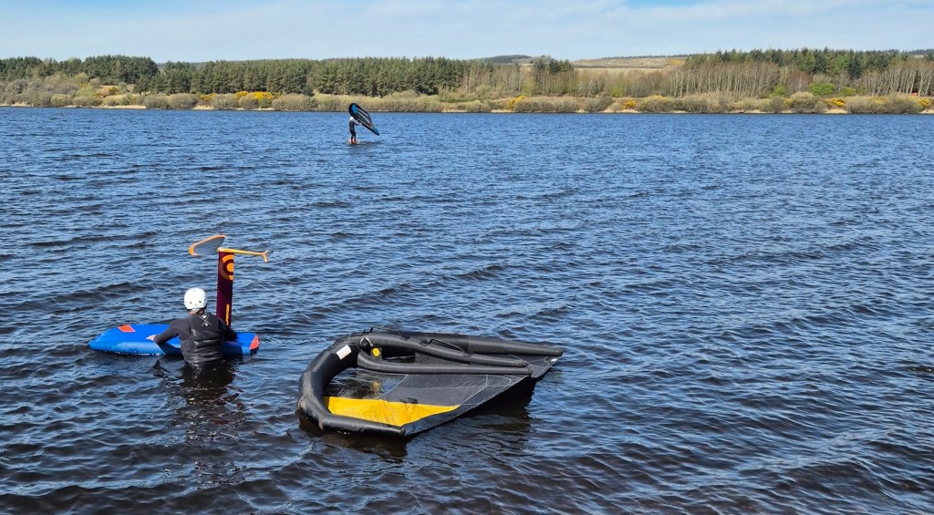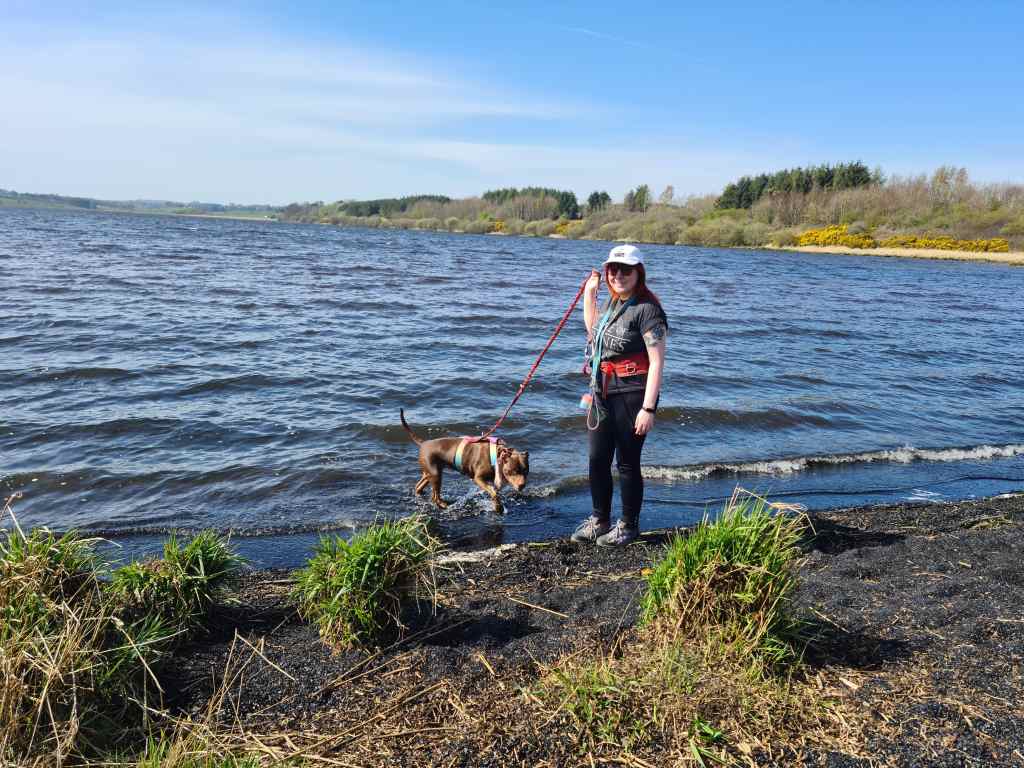 We are used to seeing the fisherman sitting expectantly on the bank, relaxed in the knowledge that they don’t need a licence. It was the first time , however, that we’d come across inflatable windsurfing, which must make it so much easier to transport and raise the sail after you fall in. Of course, it’s considerably easier still if you don’t do it at all but they looked like they were having fun racing across Loch Fitty. Maybe not as much fun as Keira had on our walk though, exploring all the smells and sounds and paddling her paws in the water.