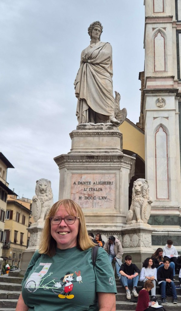 We saw the classic sights, of course, the Ponte Vecchio and the Duomo, where we shared Brunelleschi’s view. Mhairi also showed grumpy Dante how to smile in the piazza outside the door of the impressive Basilica di Santa Croce di Firenze.