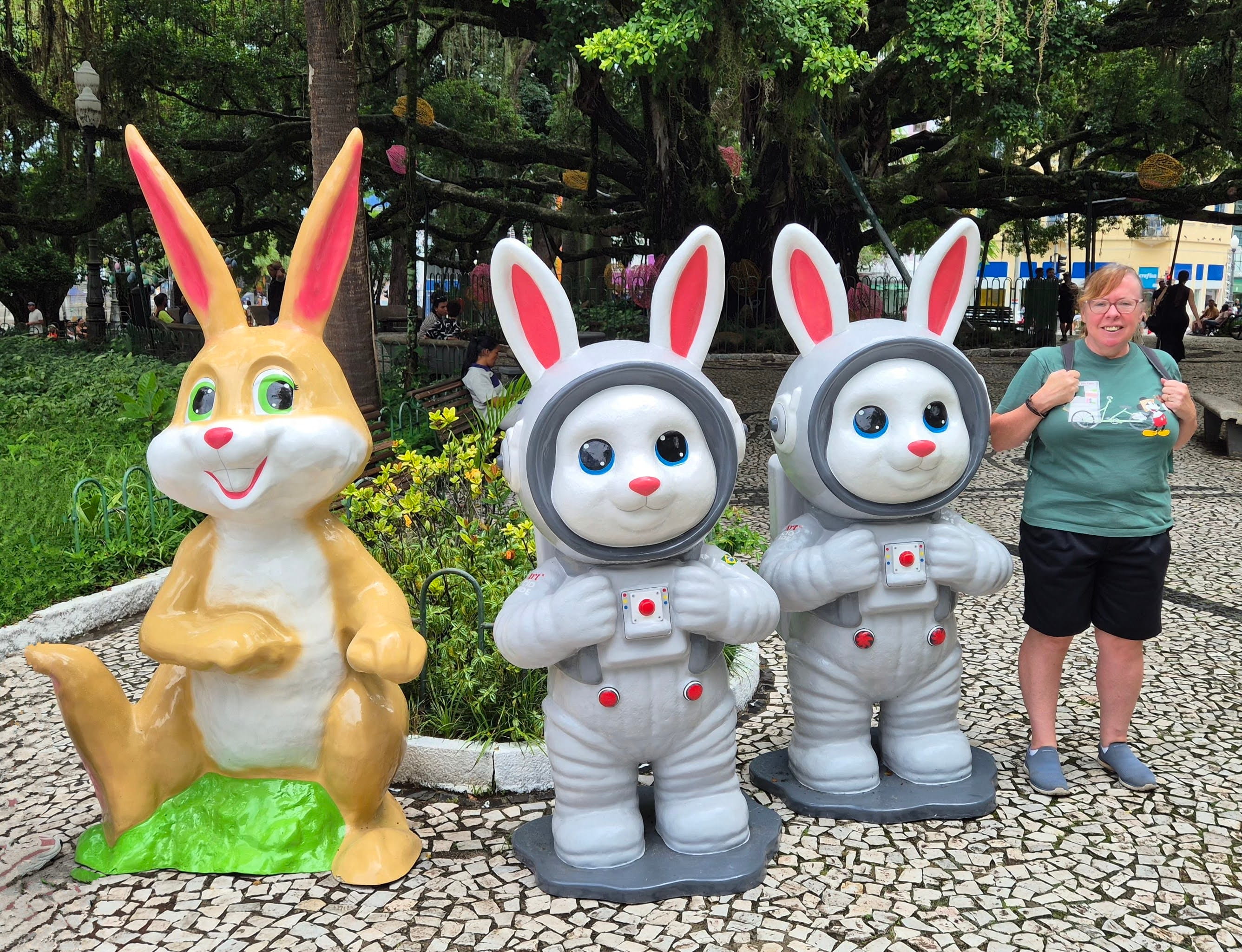 The square itself was also quite something. Although Lent had just started, Jesus was clearly getting ready for Easter and his rabbit helpers, including some of the lesser known astronaut variety, were on hand to assist.