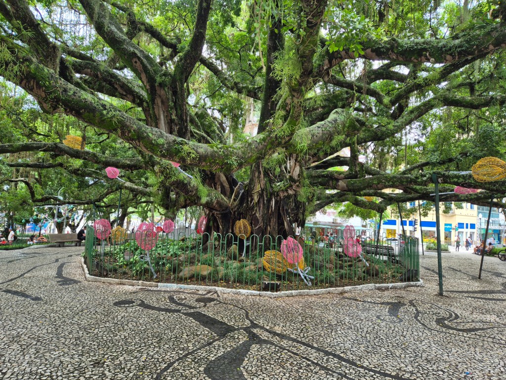 In the middle of the square is a truly magnificent fig tree which is one of the city’s historical symbols. It began life in 1871 and is still going strong in 2026. Very impressive, although the LED tulip lights just might be a more recent addition!