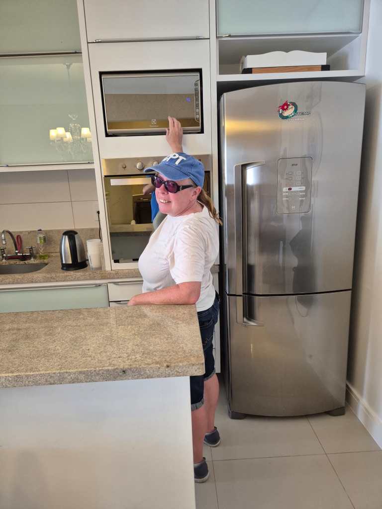 The complex we were staying in was super modern. We had provided recent photos of ourselves before arriving and access to everything was by facial recognition. This was handy when you had your hands full of shopping or beach equipment, although the screen to access our actual apartment block seemed to be somewhat heightist. Mhairi had to stand on her tiptoes to get it to even acknowledge that she was there and even then, usually blanked her. The height problem carried on into the apartment. There was no way Mhairi could safely use the microwave. It was a bit of a struggle even for Gerry!