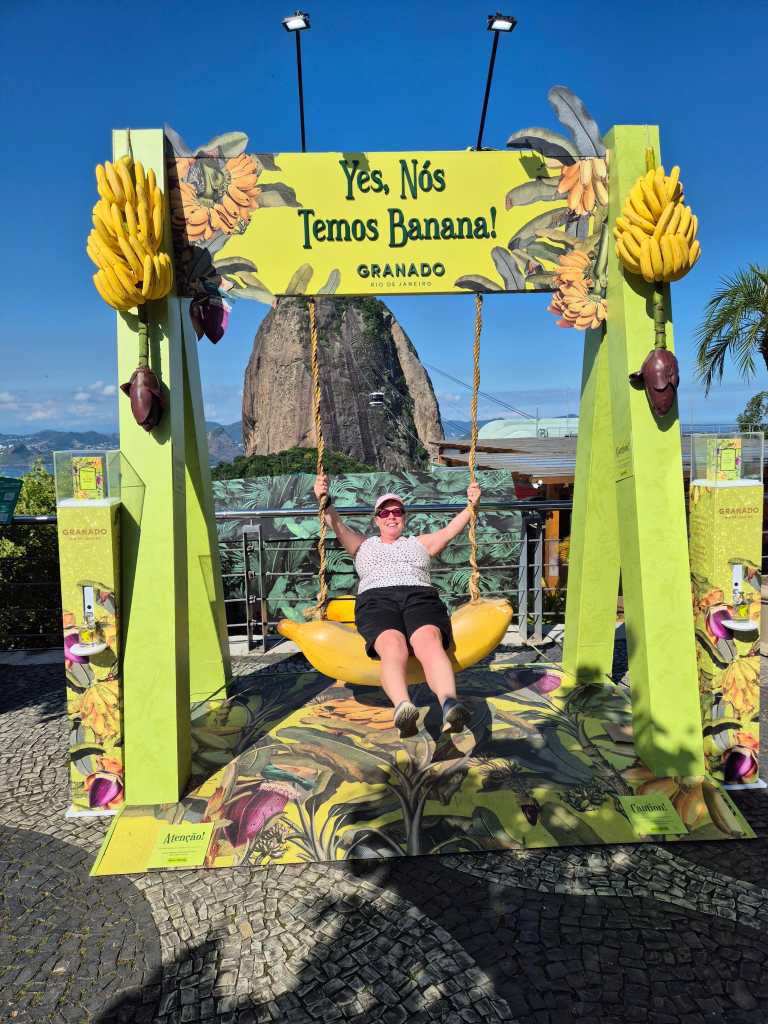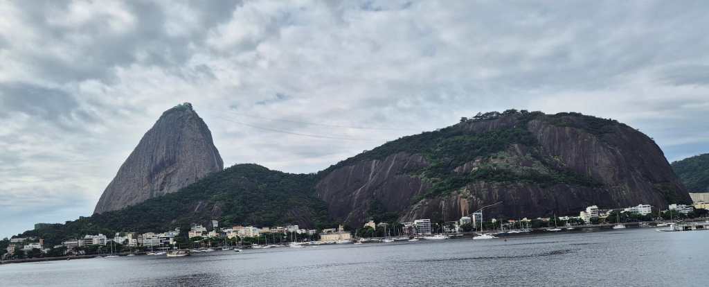 To get a feel for the city, we had taken a hop on hop off bus and as we passed the Sugarloaf mountain cable car station, Mhairi noticed that the queue was quite small. That’s when we discovered it pays to be old in Brazil. Being 60, I paid half price for my ticket, which came with fast track privileges. Because Mhairi was with me (my carer?), she got fast track privileges too. These were particularly valuable as it took two cable cars to get to the top, so four rounds of skipping the big queues. And all I had to do to get these benefits was to have lots and lots of birthdays! We were well rewarded too by the panoramas above and below us.