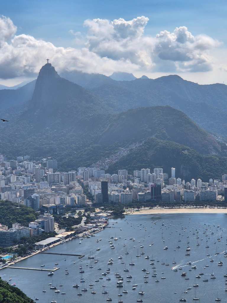 The statue is truly impressive though, exactly as one of the New 7 Wonders of the World ought to be. Our other main reasons for an early morning arrival was to avoid the clouds and luckily we had mostly clear skies for our trip to enjoy the spectacular views over the city and its bays. We could look down on Sugarloaf mountain where we had been the day before.