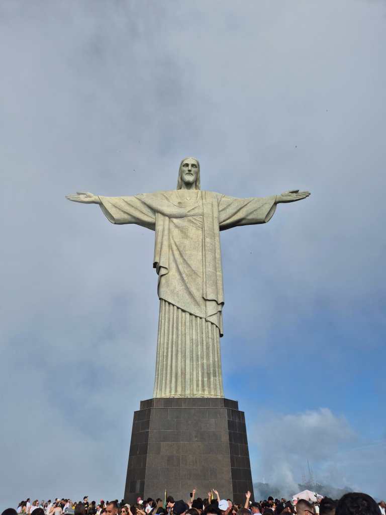 The most striking image of Rio is the art deco statue of Christ the Redeemer. The original design proposed that Christ would have a globe in one hand and a cross in the other. This was considered too difficult to construct and, to be honest, the silhouette of those welcoming outstretched arms looks much better anyway. We were aware that it’s a very popular spot so, cunningly, we booked an early morning taxi and train to arrive first and beat the crowds. Inevitably, we merely joined up with all the hundreds of cunning people who were also beating the crowds. So we all milled around the foot of the Redeemer, huddled together like penguins in a BBC documentary and posing for photos as if we were all Kate Winslet on the prow of the Titanic.