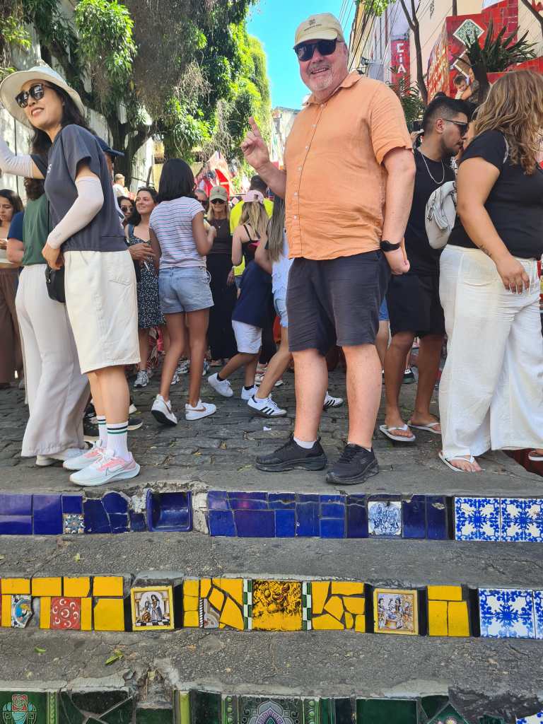All the tourist crowds weren’t just on the beaches and up on top of mountains. The Selarón Steps are a world-famous, vibrant mosaic staircase: 125 metres long and consisting of 215 steps and over 2,000 tiles from more than 60 countries. I want you to close your eyes and concentrate – picture it as if you are there. We were there and you’re probably seeing more of it in your mind’s eye than we did in real life. I enjoyed the thought that we tourists are so daft that we will happily cover up the very thing we came to see by standing on top of it.